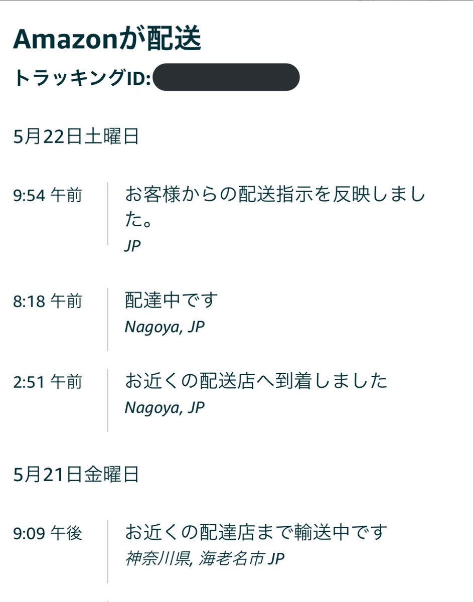 そして5月22日に“置き配指定サービス”での最終連絡が届き、その期待は最高潮へと達しますが、その約7時間後に異変に気付きます。