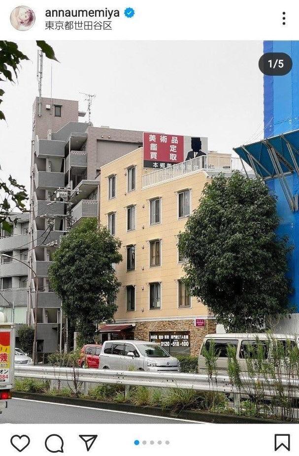 アンナは世田谷区内のビルの写真をアップ。ビルの上には看板がかかっているが、そこには顔だけが黒く塗りつぶされた写真がかかっている。アンナは「顔だけ黒く塗られたのは父です」とつぶやき「余りにも残酷で、余りにも酷い行為に。。。涙が出て。。。悲しくて。。」と悔しさをにじませた。