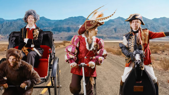 MVでは、「もしも生きた時代の異なる偉人たちが一緒に旅をしたら?」という想像の物語が描かれています。3人のメンバーは、コロンブス、ナポレオン、ベートーヴェンに扮して登場。海の上に浮かぶ小島に立つ一軒家に入ると、猿の着ぐるみを着た類人猿たちと出会い、ホームパーティーをするという流れとなっています。